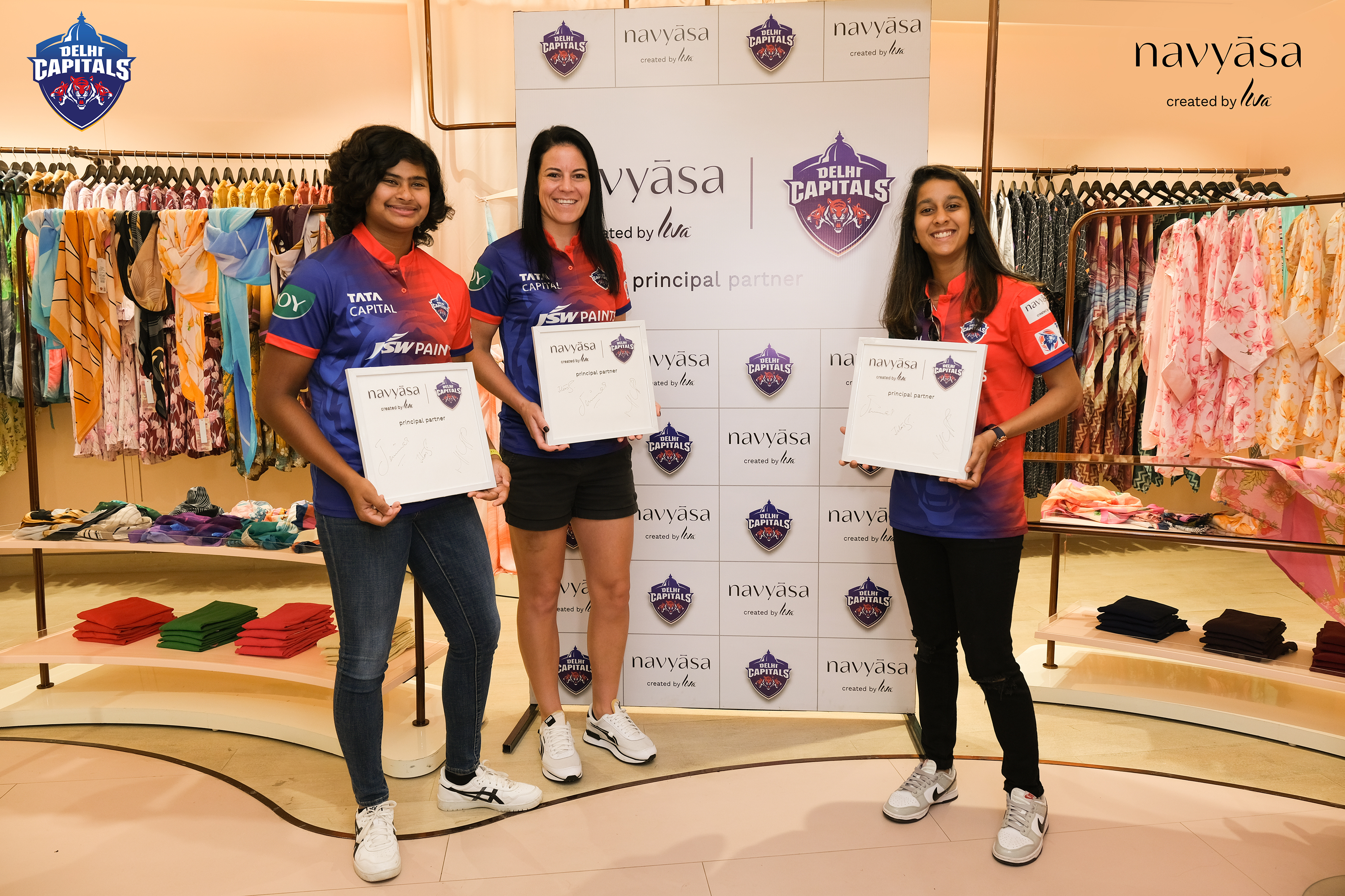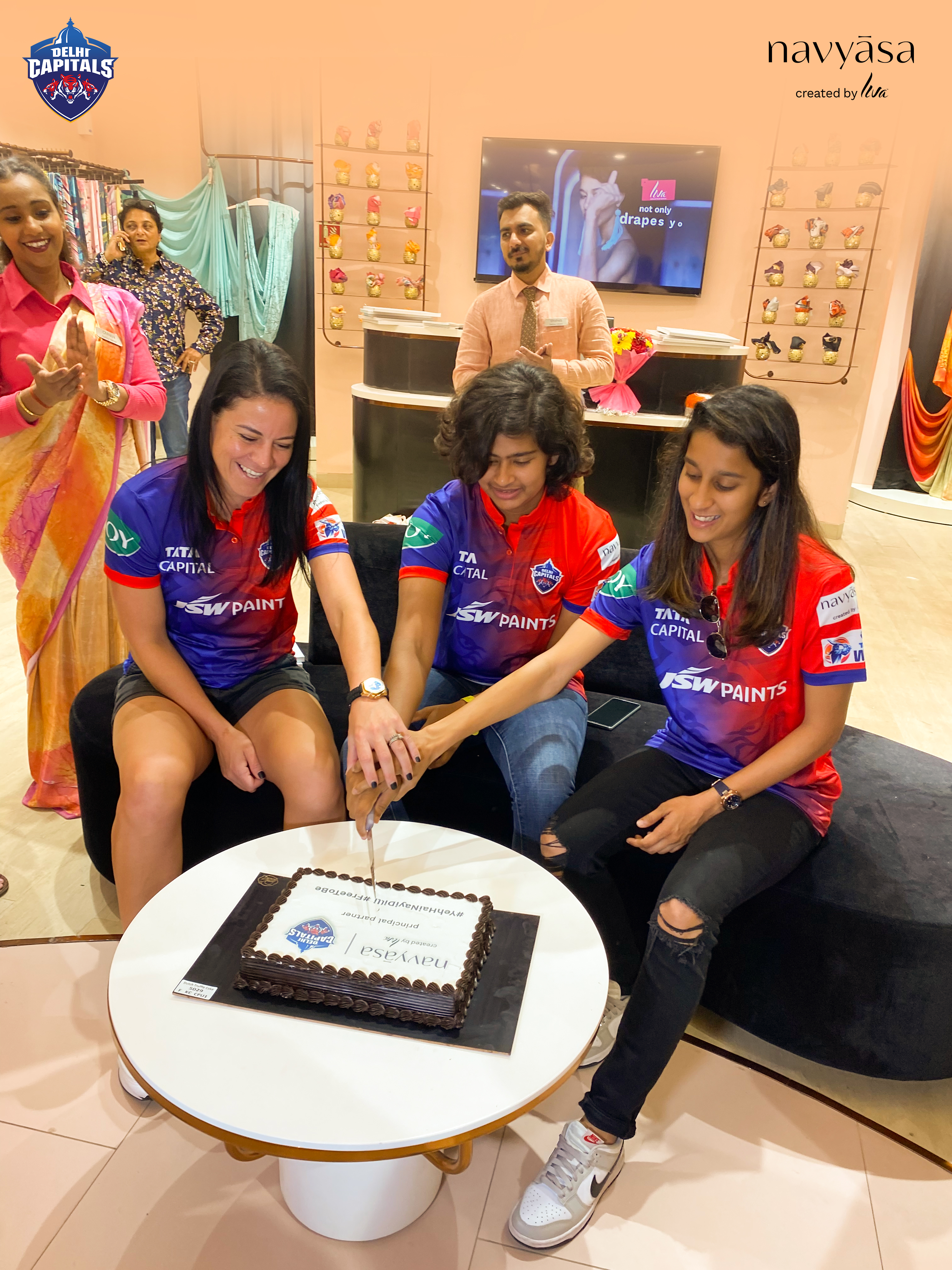 an interactive photoshoot with the players of DC teams was all fun and exciting, not just for team navyāsa but also for the DC players. this was followed by a meet-and-greet session at the navyāsa palladium store in mumbai with tanvi shah as the anchor, asking fun questions from these fierce beauties. the event was made memorable by the players signing mementos and cutting a cake while interacting with the audience in the store.