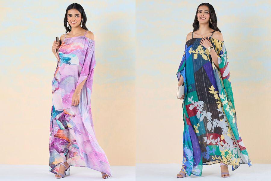 fabric decides the mood. lightweight crepe and crinkle lurex capture movement and add personality without excess weight. for daytime gatherings, breathable weaves photograph beautifully and keep you comfortable. subtle lurex threads bring the right amount of shimmer for late afternoon functions without feeling like full evening wear. these fabric choices make the kaftan dress a go-to when you want polished ease.